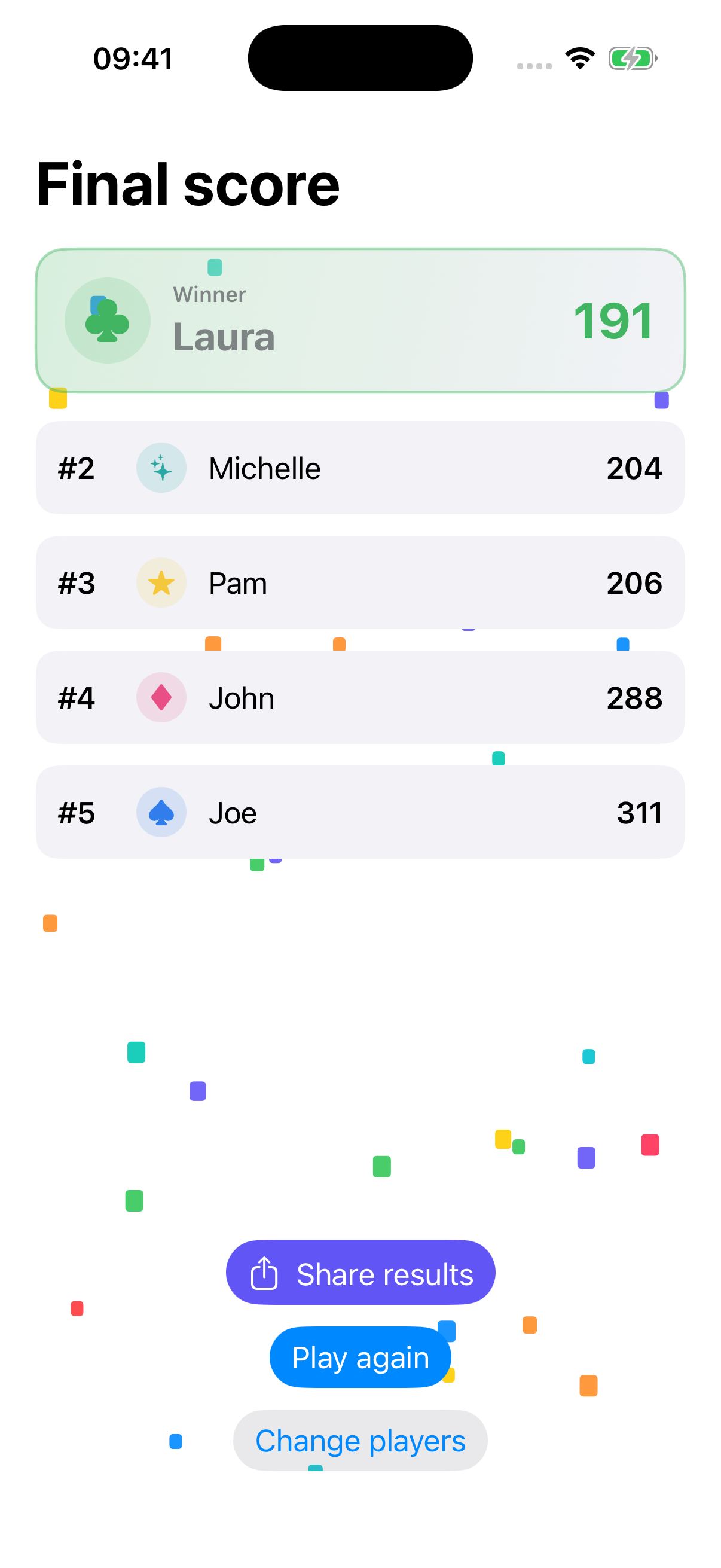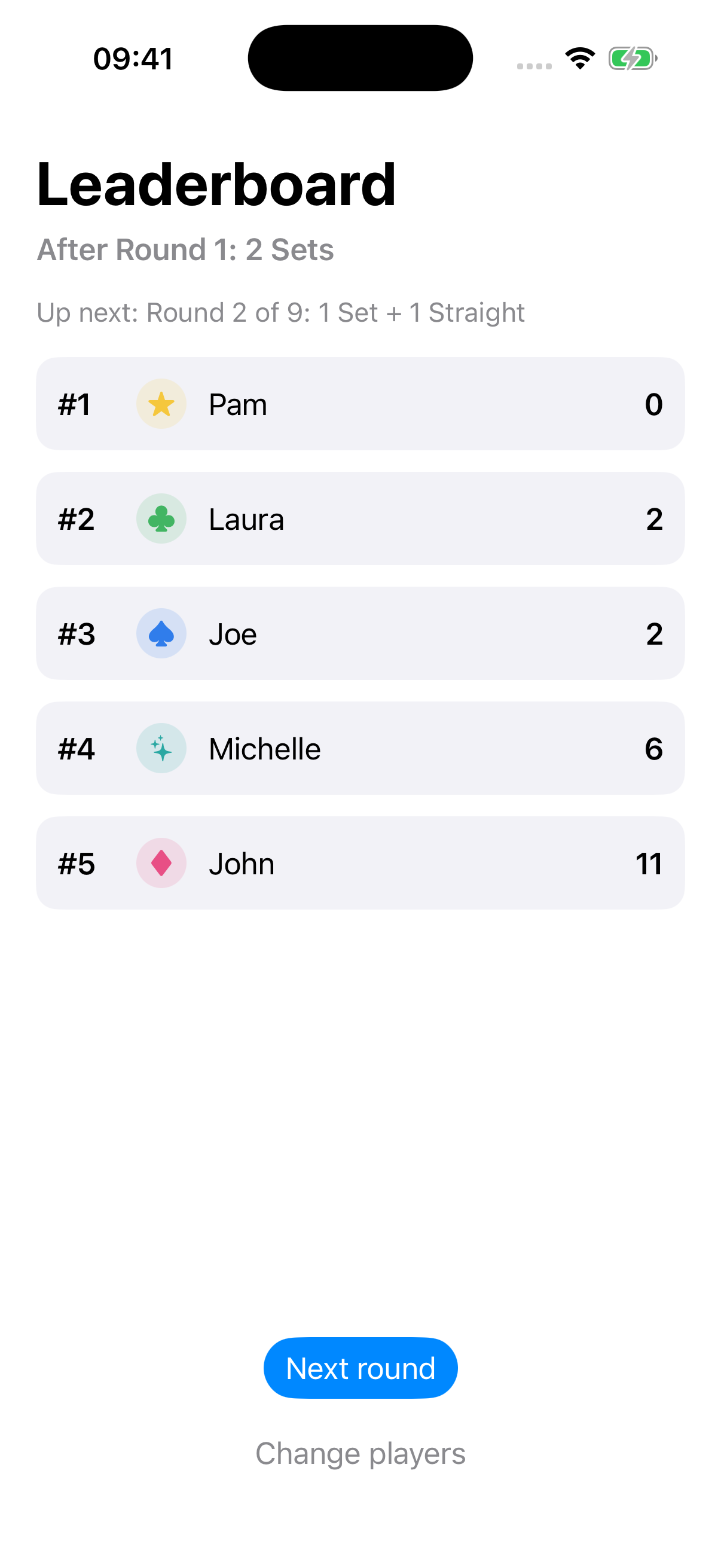 Track rounds, standings, and final results with a clean, distraction-free interface.